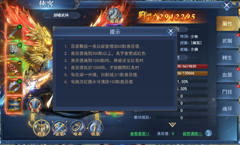 1、惡意擊殺一名玩家將會增加50點善惡值